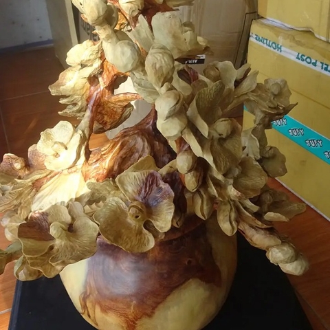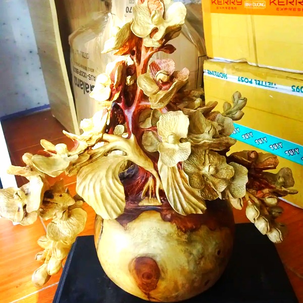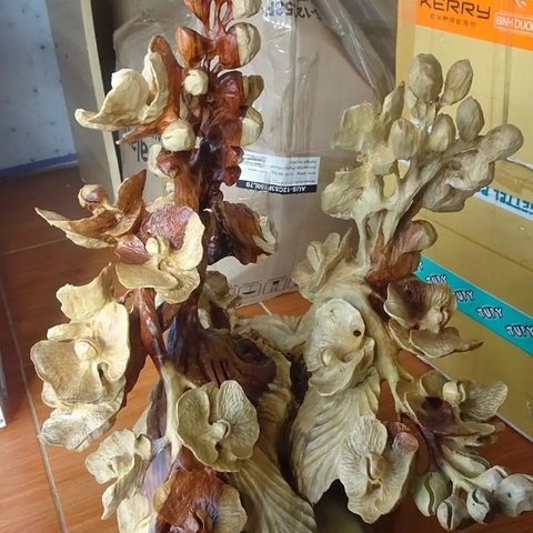 Tượng gỗ bình hoa lan hồ điệp đục tay sắc xảo gỗ hương đỏ
