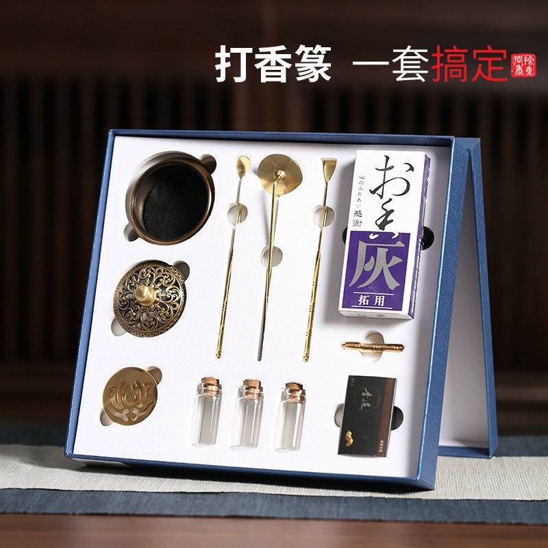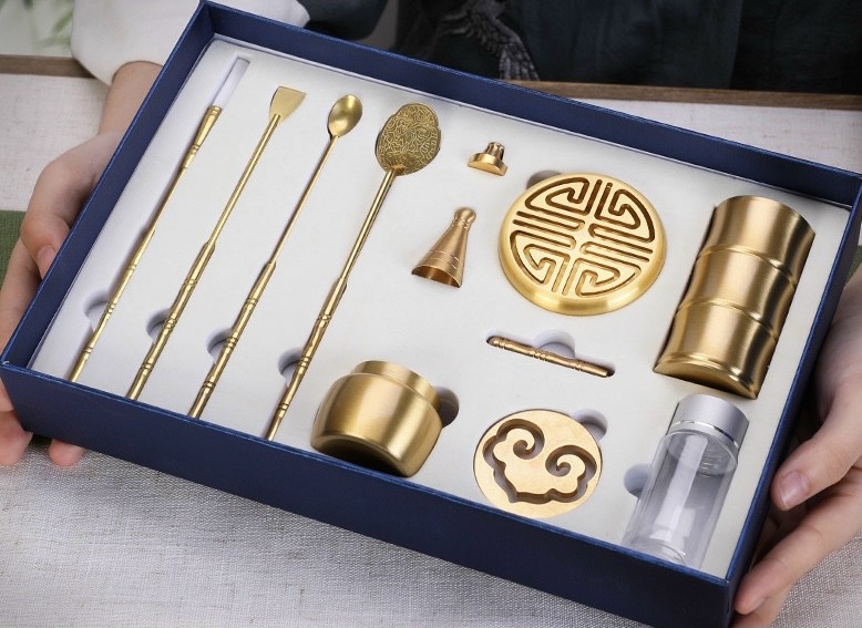 Bộ Lư Đồng Xông Trầm Hương Đầy Đủ + Cát Trắng + Dụng Cụ