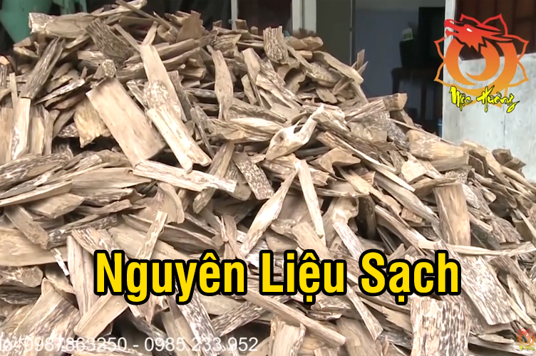 Nguyên liệu chính là gỗ miếng trầm hương từ cây dó bầu có nguồn gốc từ các tỉnh miền trung và miền nam Việt Nam, gỗ trầm hương Việt Nam cho chất lượng tinh dầu tốt nhất trên thế giới. Sau khi đã có nguyên liệu an toàn và đạt chất lượng, nguyên liệu sẽ được trẻ nhỏ hoặc xay nhuyễn và để ủ lên men khoảng 10-14 ngày.