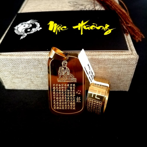 Combo Mặt dây chuyền + Nhẫn bát nhã tâm kinh chính hãng mạ vàng 24k