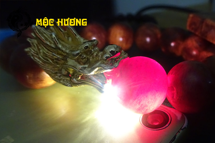 - Gỗ Huyết Long có đặc tính đặc biệt là thấu quang lên khi chiếu đèn qua nó sẽ phát sáng đỏ rực như máu.