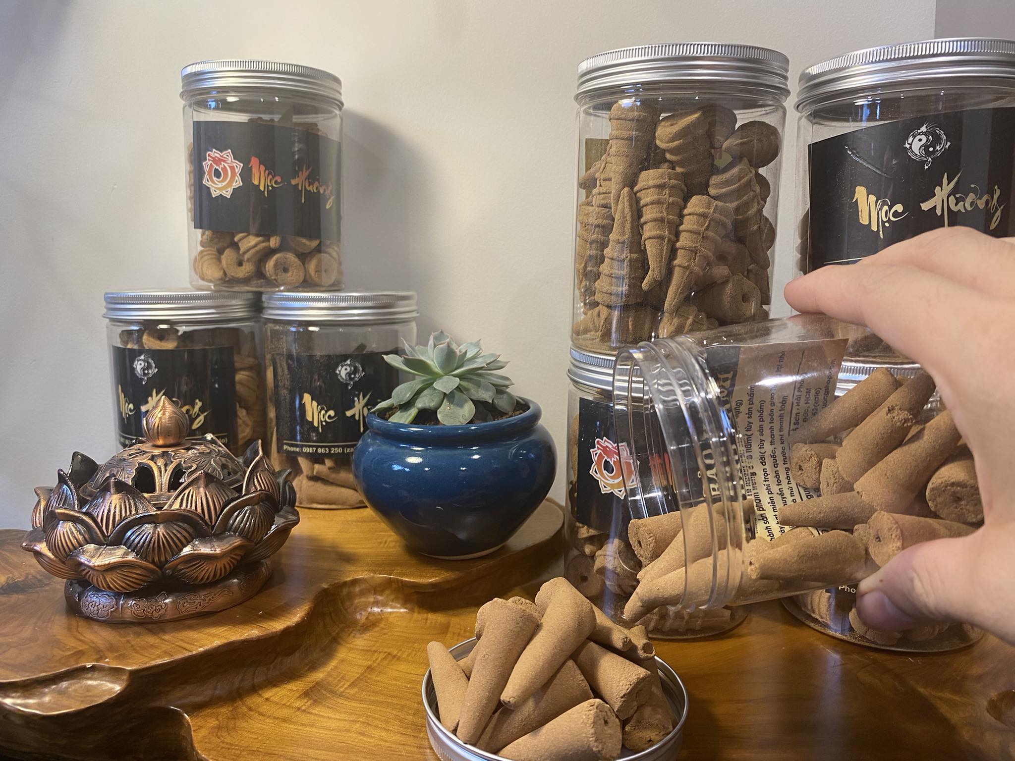 Thác khói đàn hương là lựa chọn của những người yêu thích tính thẩm mỹ cao và tinh tế. Bạn có thể đặt nụ trầm trên đỉnh thác, đốt cháy một đầu nụ và hương thơm nhẹ nhàng từ khói ngược sẽ giúp bạn thư thái và thanh tịnh.