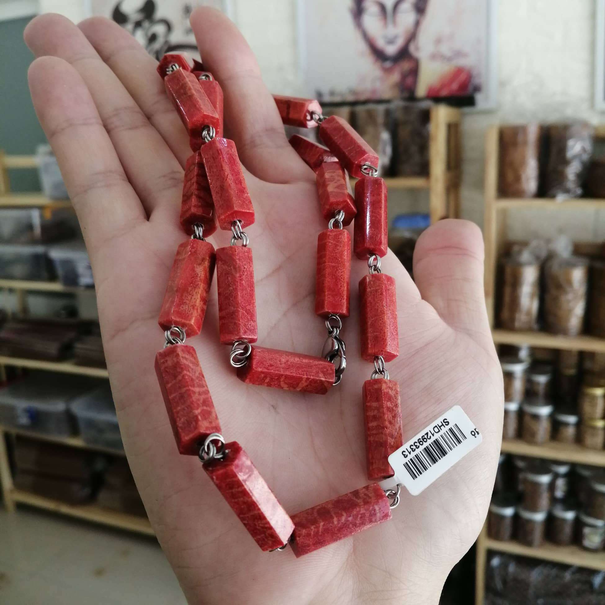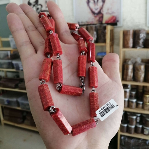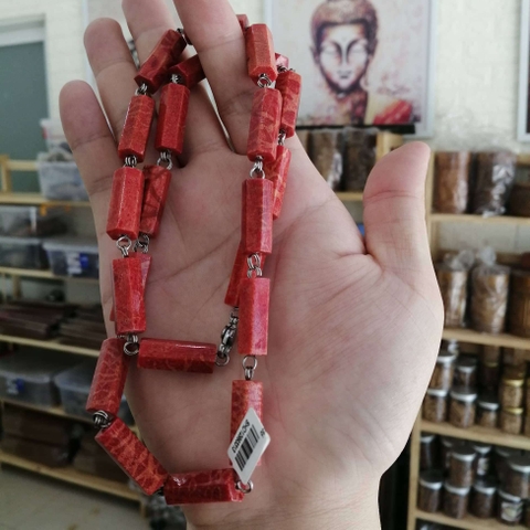 Dây Chuyền San Hô Đỏ Tự Nhiên Đốt Trúc Lục Giác 8mm