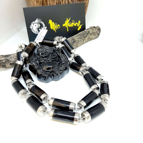 Dây Chuyền San Hô Đen Trúc 9-10mm Bọc Innox Cao Cấp