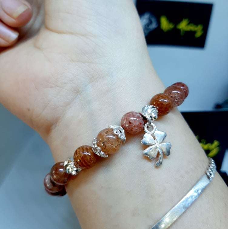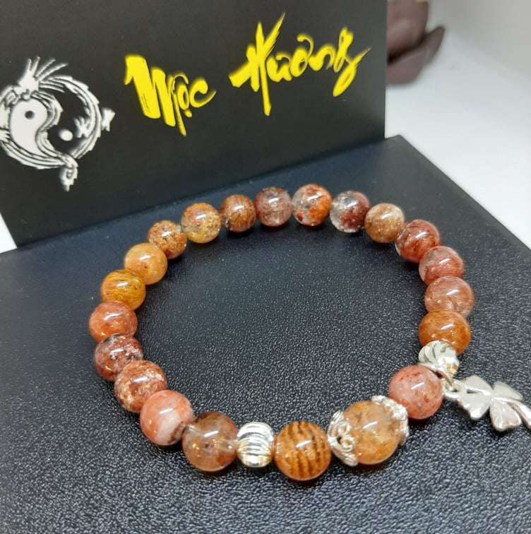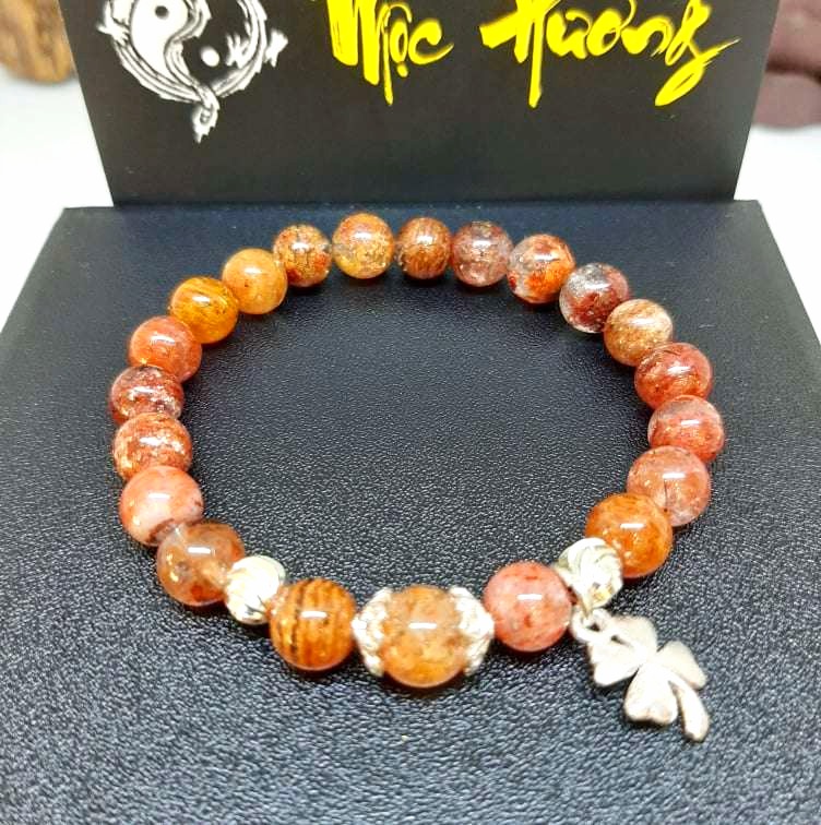 [ Sale Hot ] - Thạch Anh Ưu Linh Màu Cam 8mm Mix Charm Bạc Vip 5A