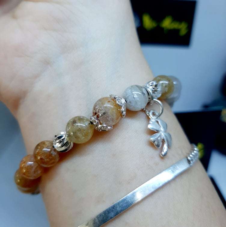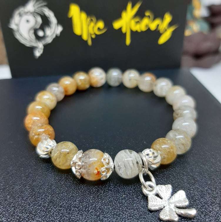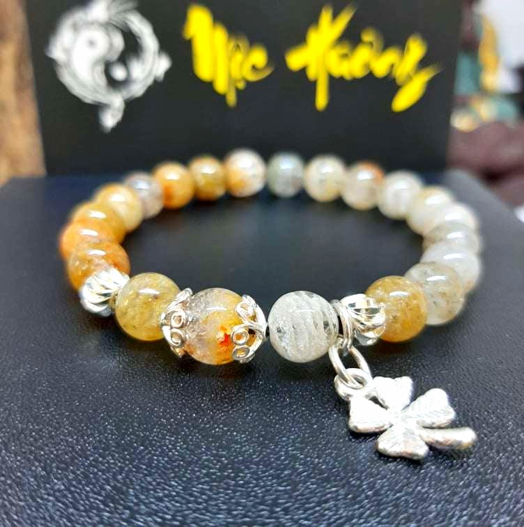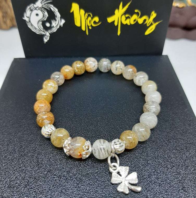 [ Sale Hot ] - Thạch Anh Ưu Linh Màu Trắng Vàng 8mm Mix Charm Bạc Vip 5A