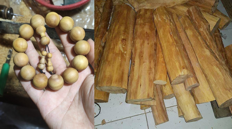 Các khối gỗ được cắt và tiện thành những hình dạng cơ bản của hạt vòng. Quá trình này đòi hỏi sự chính xác cao để đảm bảo các hạt có kích thước đồng đều.