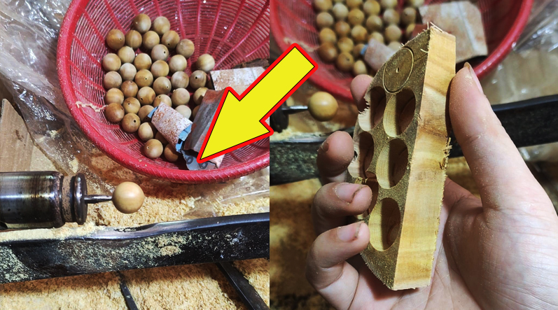 Hạt gỗ sau khi đã hoàn thiện sẽ được khoan lỗ để xâu chuỗi. Độ chính xác trong việc khoan lỗ là rất quan trọng để các hạt có thể xâu thành chuỗi một cách dễ dàng.