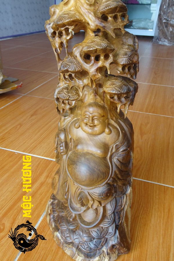 Tượng di lặc đứng gốc tùng gỗ bách xanh thơm ngát