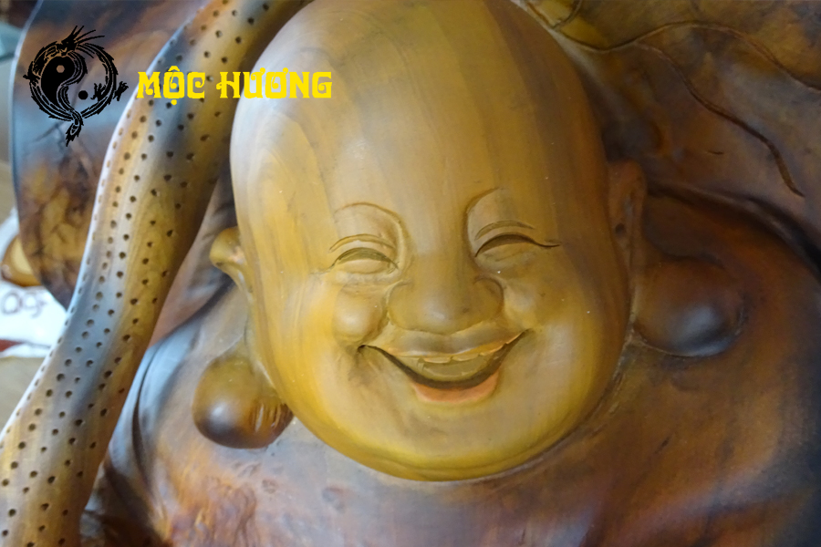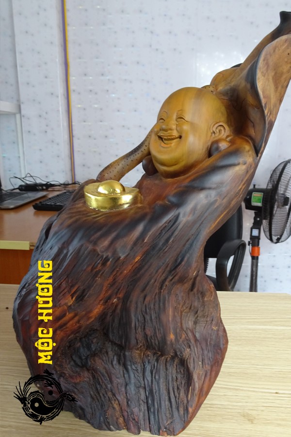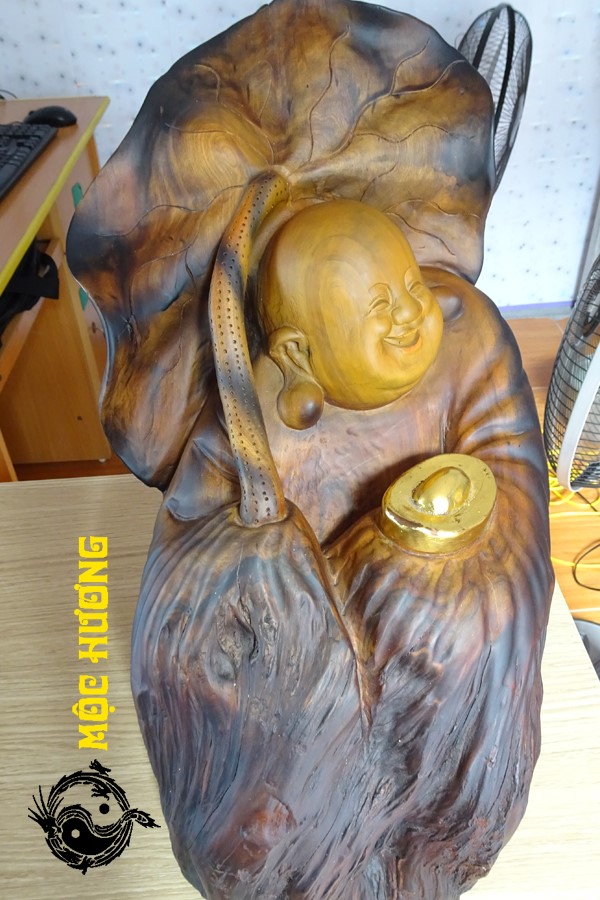 Tượng di lặc kim tiền lá sen gỗ lũa bách xanh cực vip