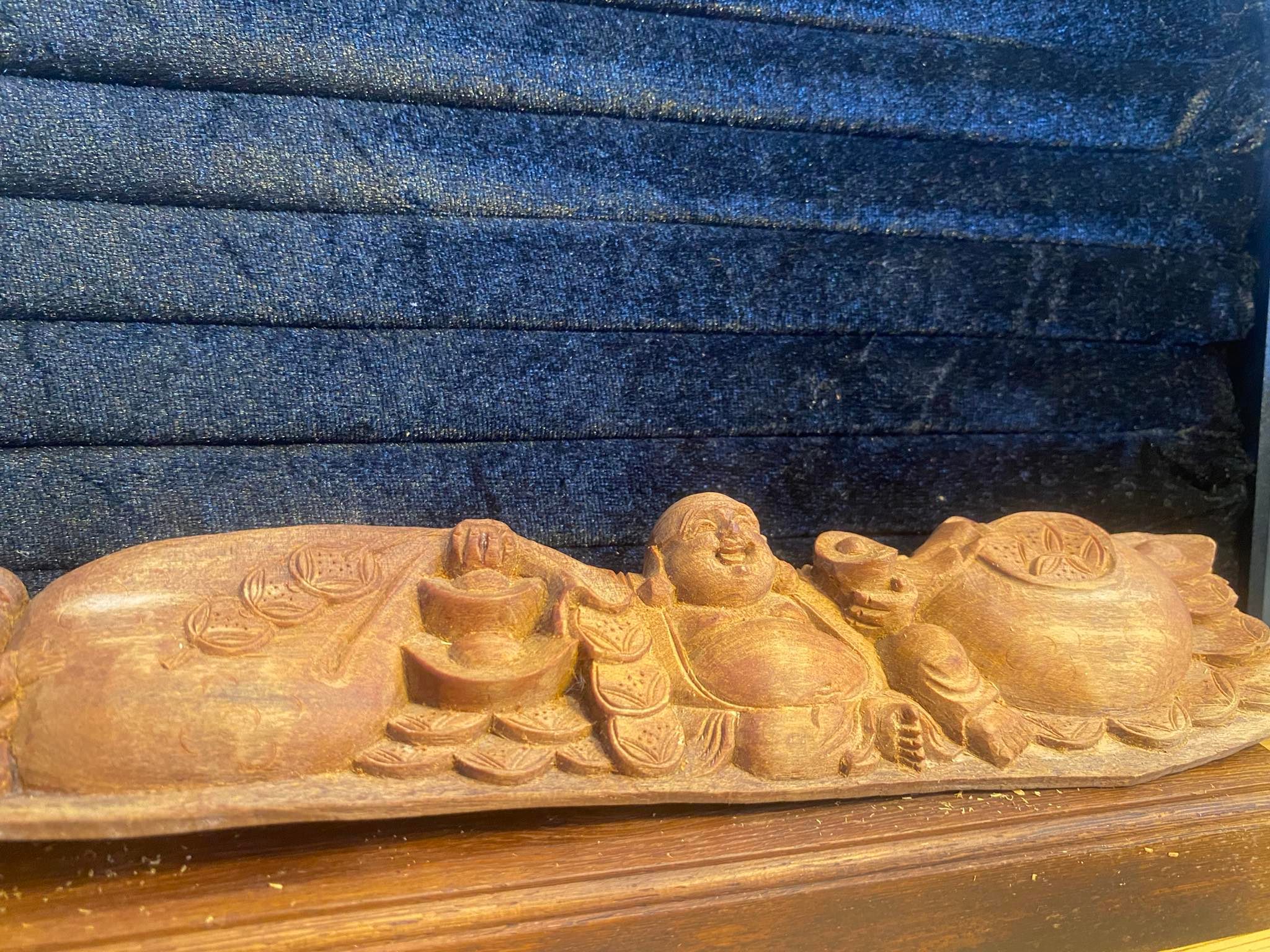 Tượng di lặc kim tiền ngồi để xe ô tô gỗ hoàng đàn thơm ngọt