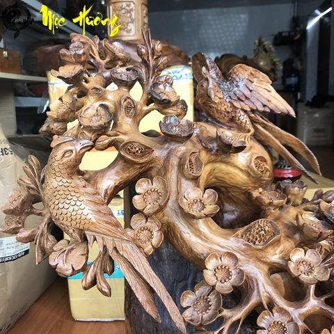 Tượng mai điểu gỗ bách xanh đục kênh bong sắc nét