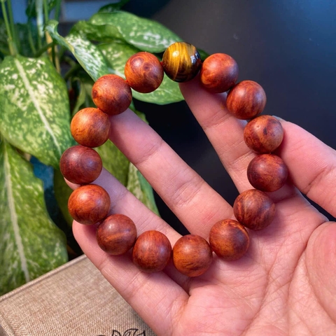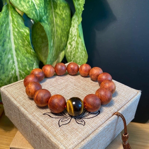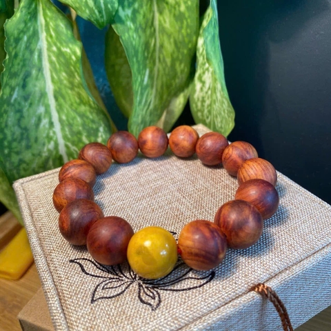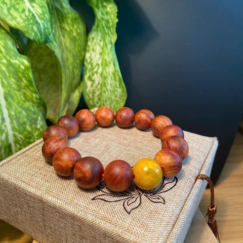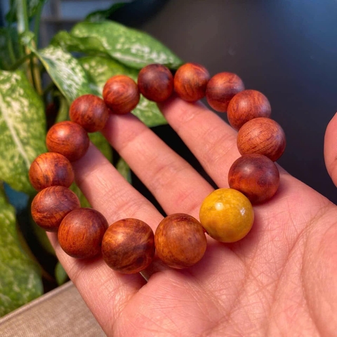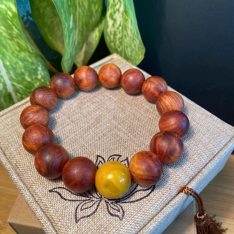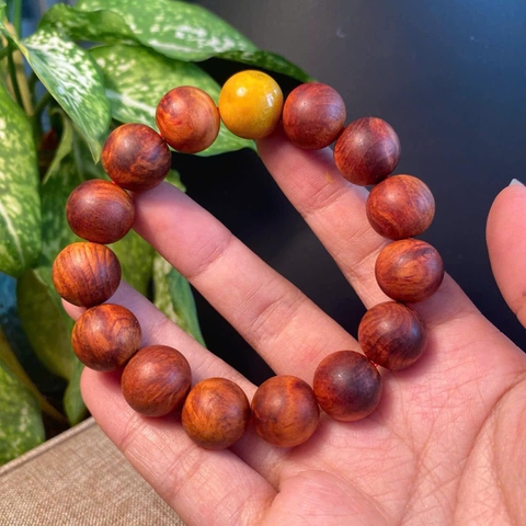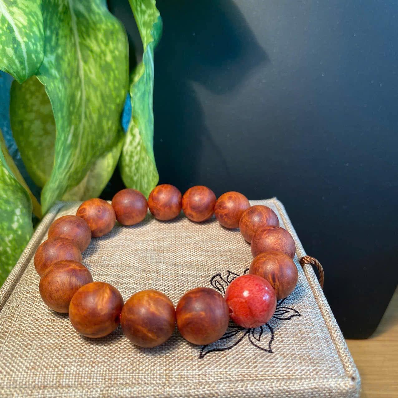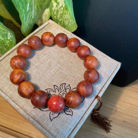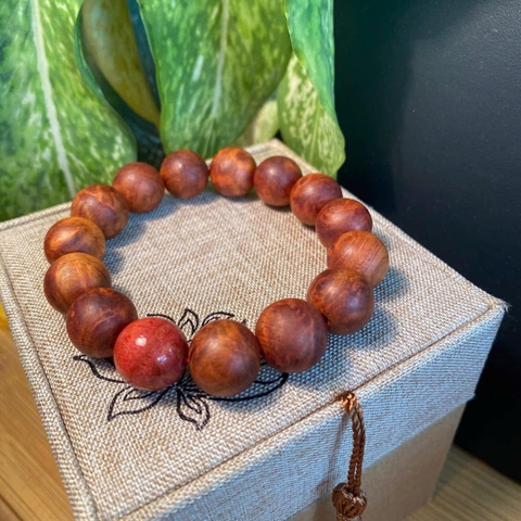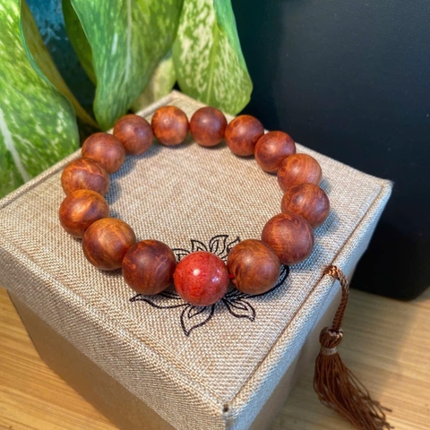 Vòng Gỗ Nu Huyết Long 14mm Mix San Hô Tự Nhiên Theo Mệnh