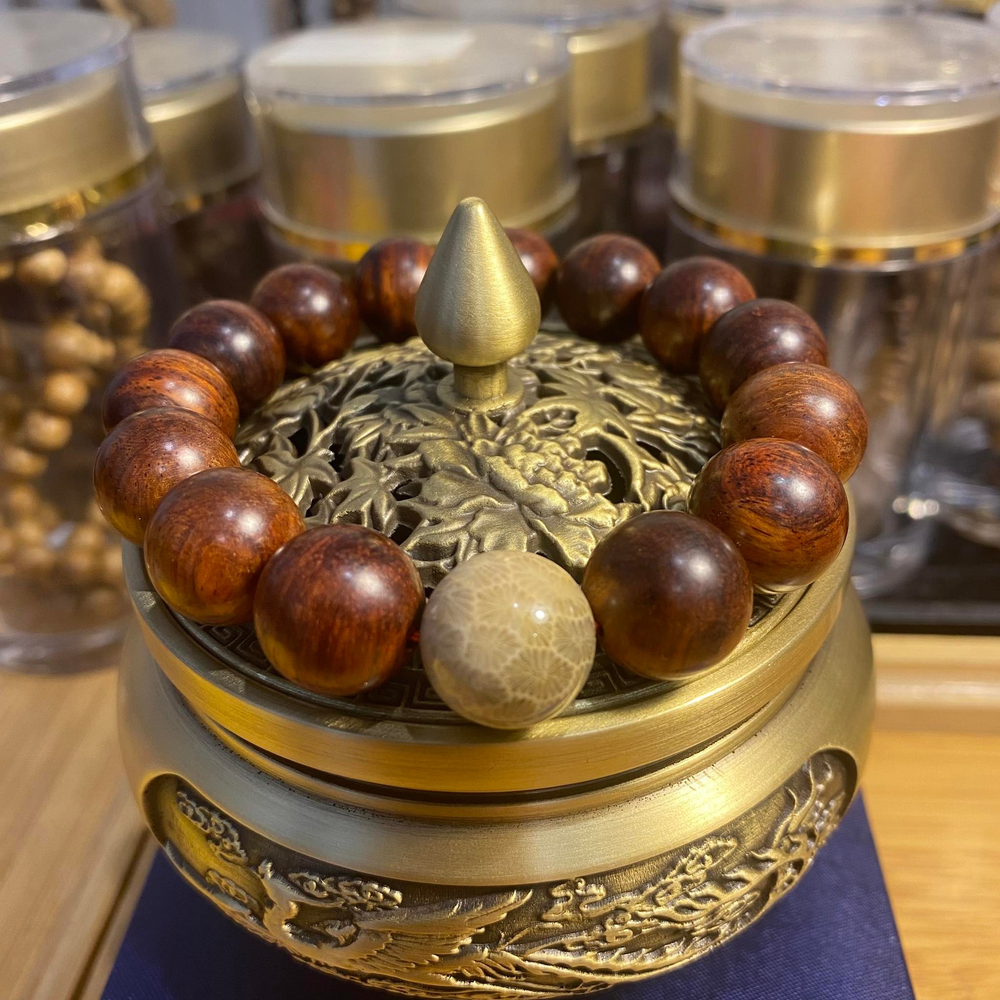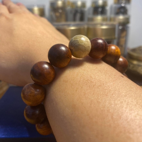 Vòng gỗ sưa đỏ mix hạt san hô hóa thạch trắng là một sản phẩm độc đáo và sang trọng, được làm từ chất liệu gỗ sưa già trên 300 năm tuổi, có độ cứng và độ bền cao. Vòng...