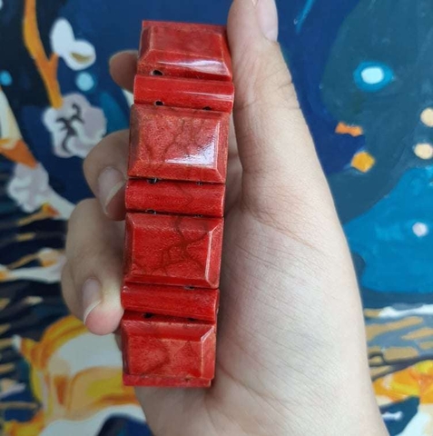 Vòng San Hô Đỏ Tự Nhiên Bản Vuông 18li Việt Nam Vip