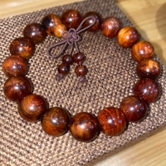 Vòng Gỗ Sưa Đỏ Quảng Bình 14mm Chun Sụn Vân Vip