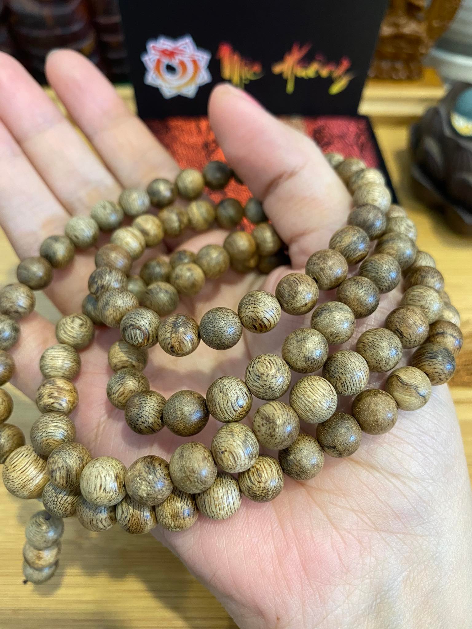 Vòng Trầm Hương Tự Nhiên 108 Hạt 8mm Tốc Phá Banh Núi Rừng
